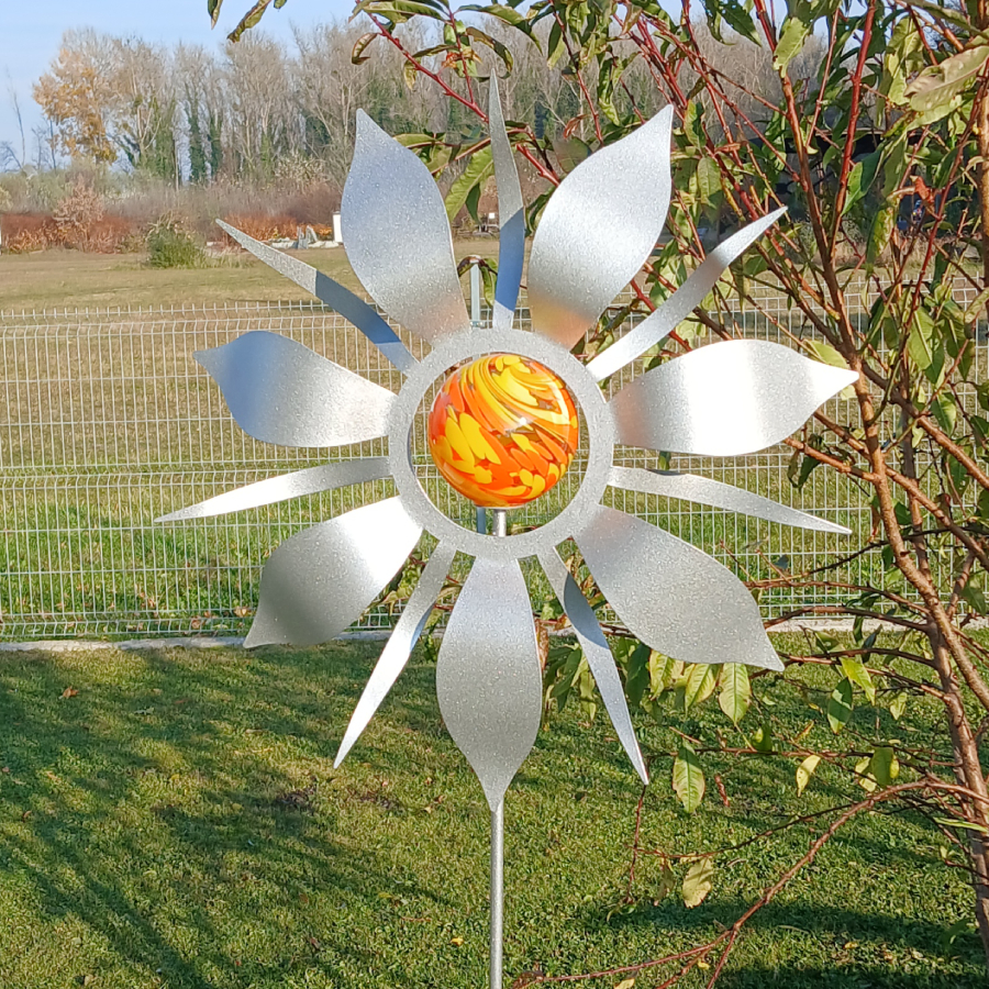 Gartenstecker Blume mit Glaskugel